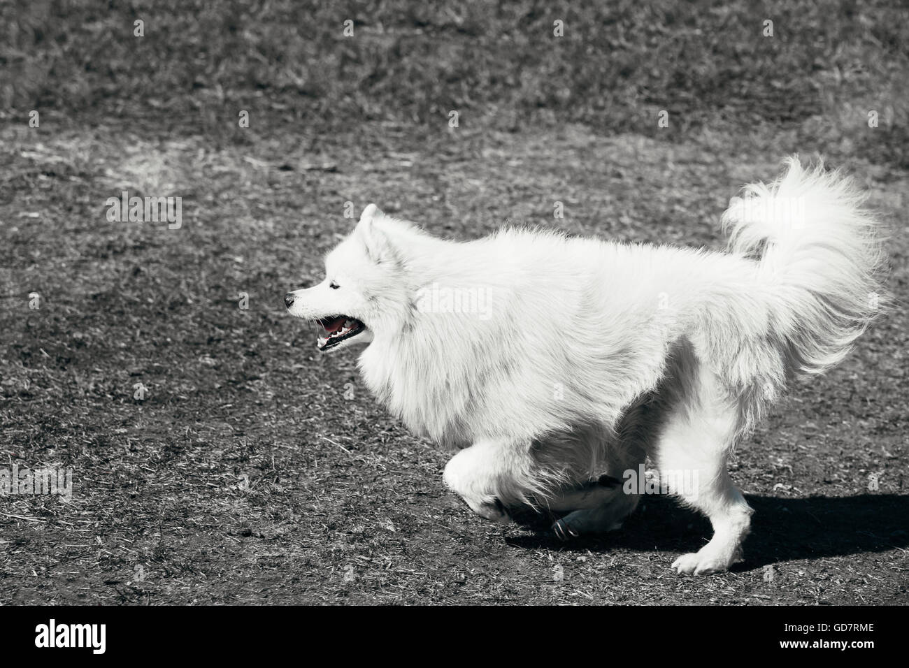Funny White Samoyed Dog Play Run Outdoor Popular Medium Size Stock