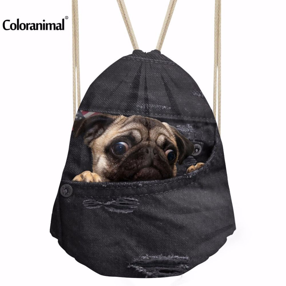 2019 Instantarts Black Denim 3d Pug Dog Print Gym Bags Drawstring