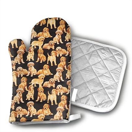 Amazon Com Wialis8 Black Golden Retriever Dog Puppy Oven Gloves Non