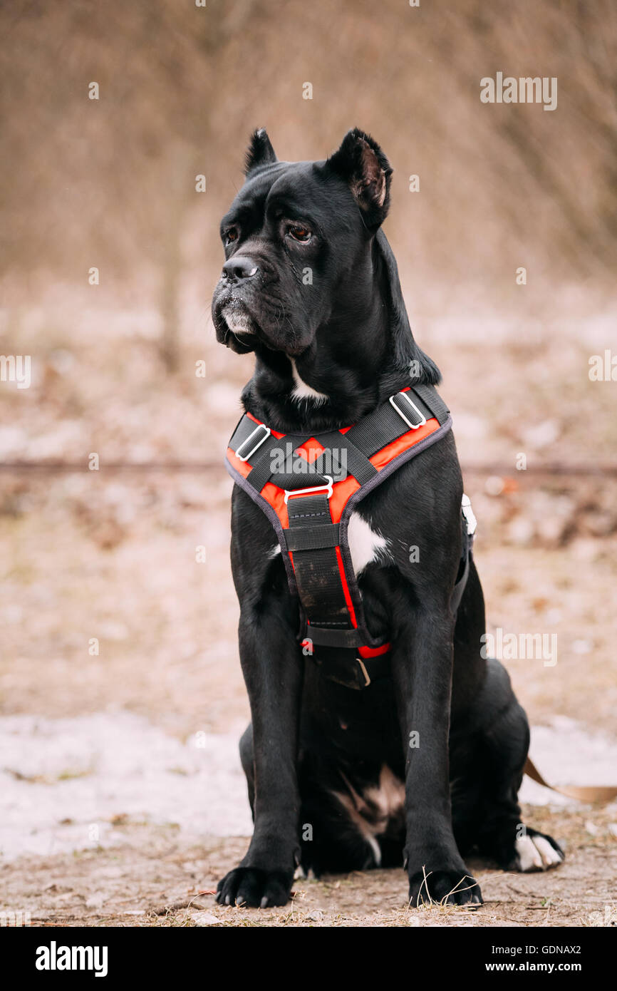 Large Dog Breed Cane Corso Black In The Woods For A Walk Stock