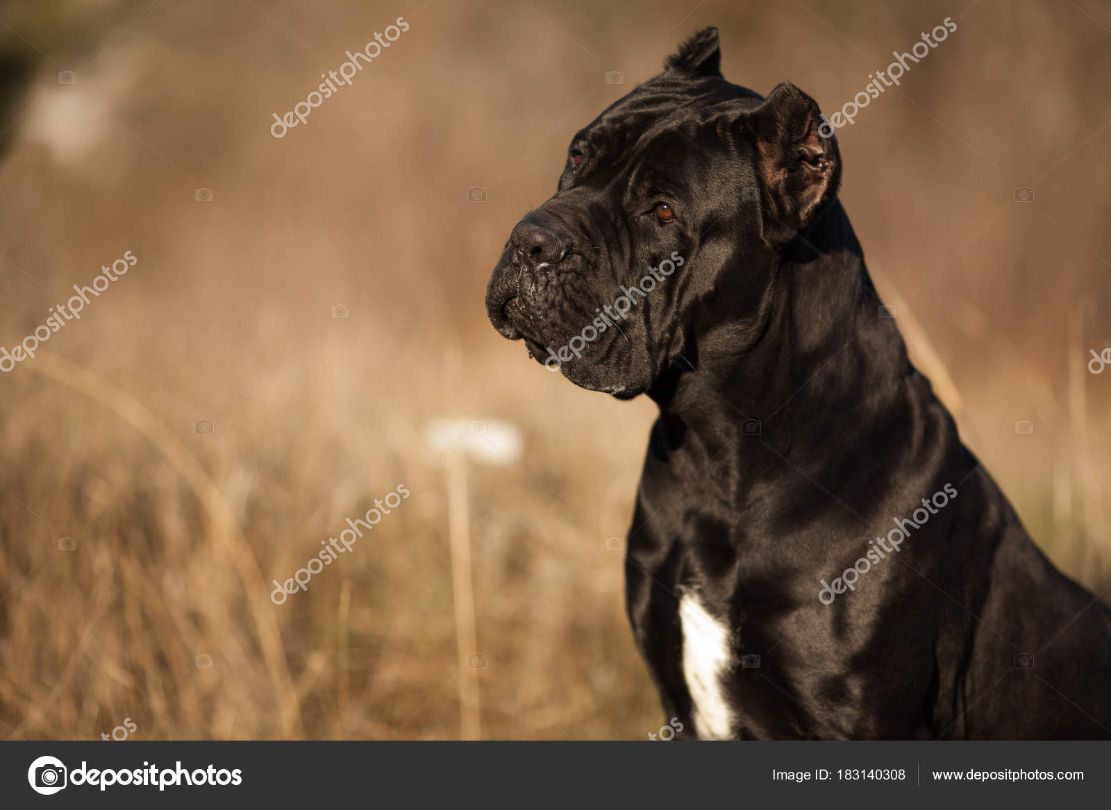 Large Dog Breed Cane Corso Black Beautiful Large Portrait Stock