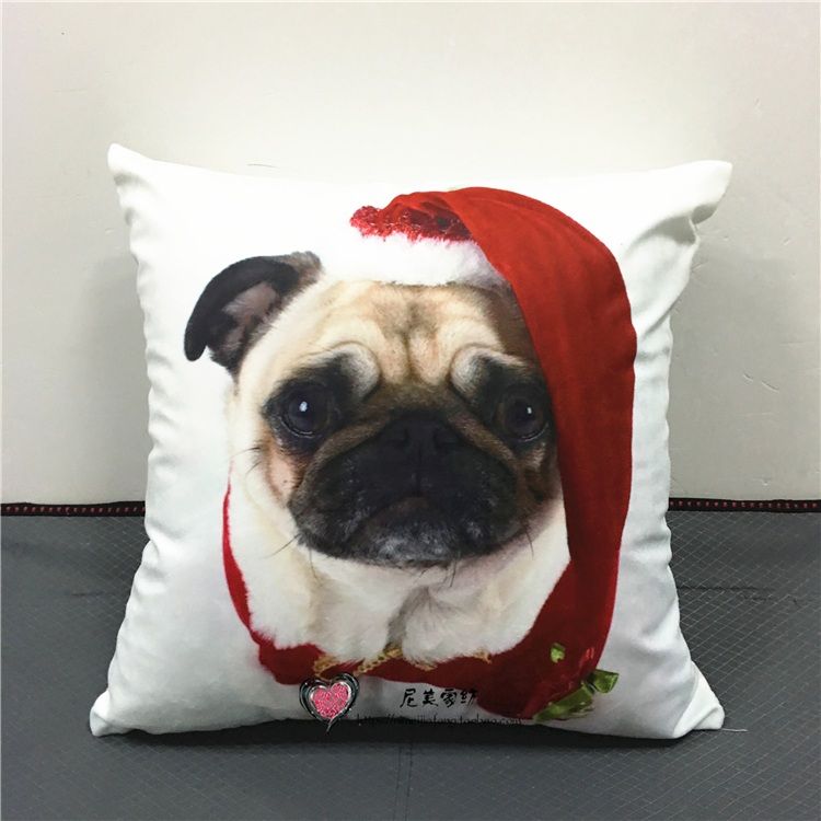 Lovely Pug Dog Wearing Christmas Hat Cushion Cover Bull Terrier