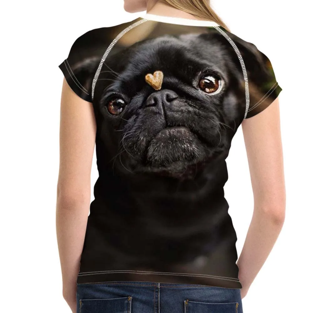 Fashion Brand Summer T Shirt Women Cute 3d Black Pug Dog Puppy Print