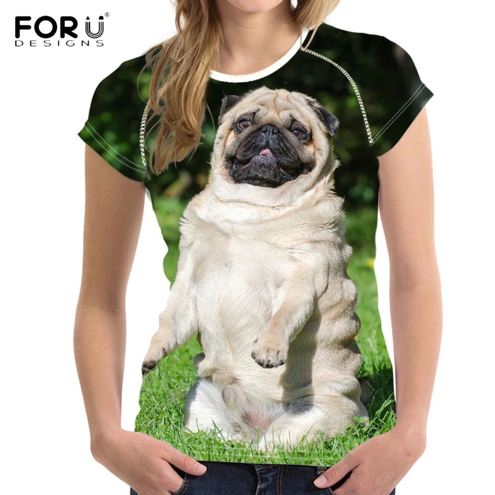 Forudesigns Fashion Brand Summer T Shirt Women Cute 3d Black Pug Dog