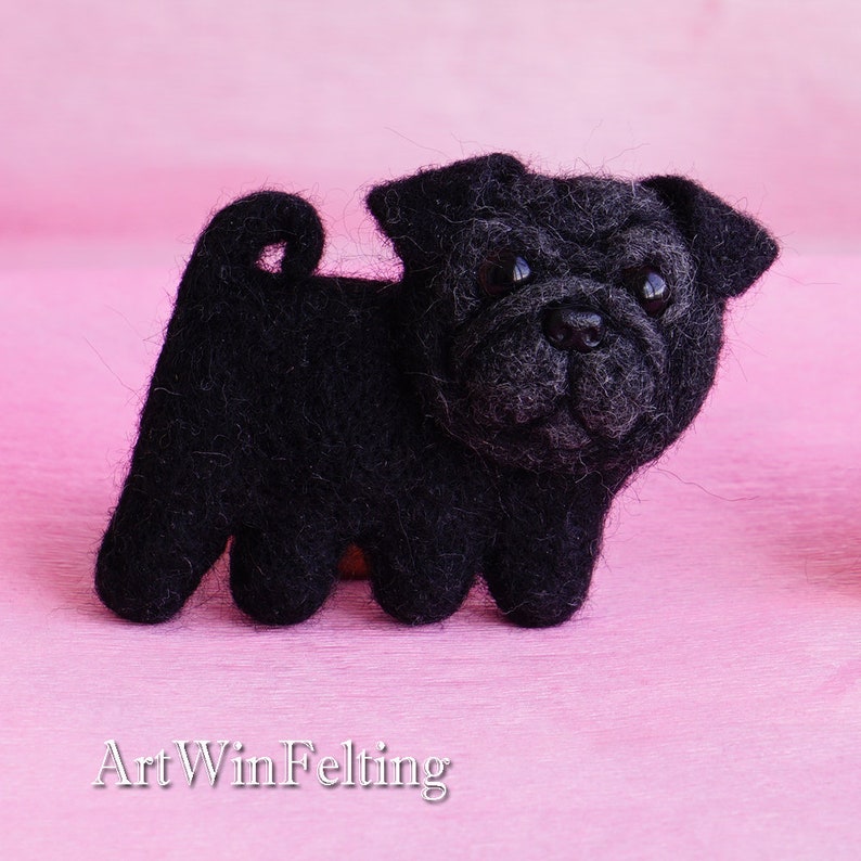 Made To Order Needle Felted Miniatures Of Black Pug Brooch Etsy