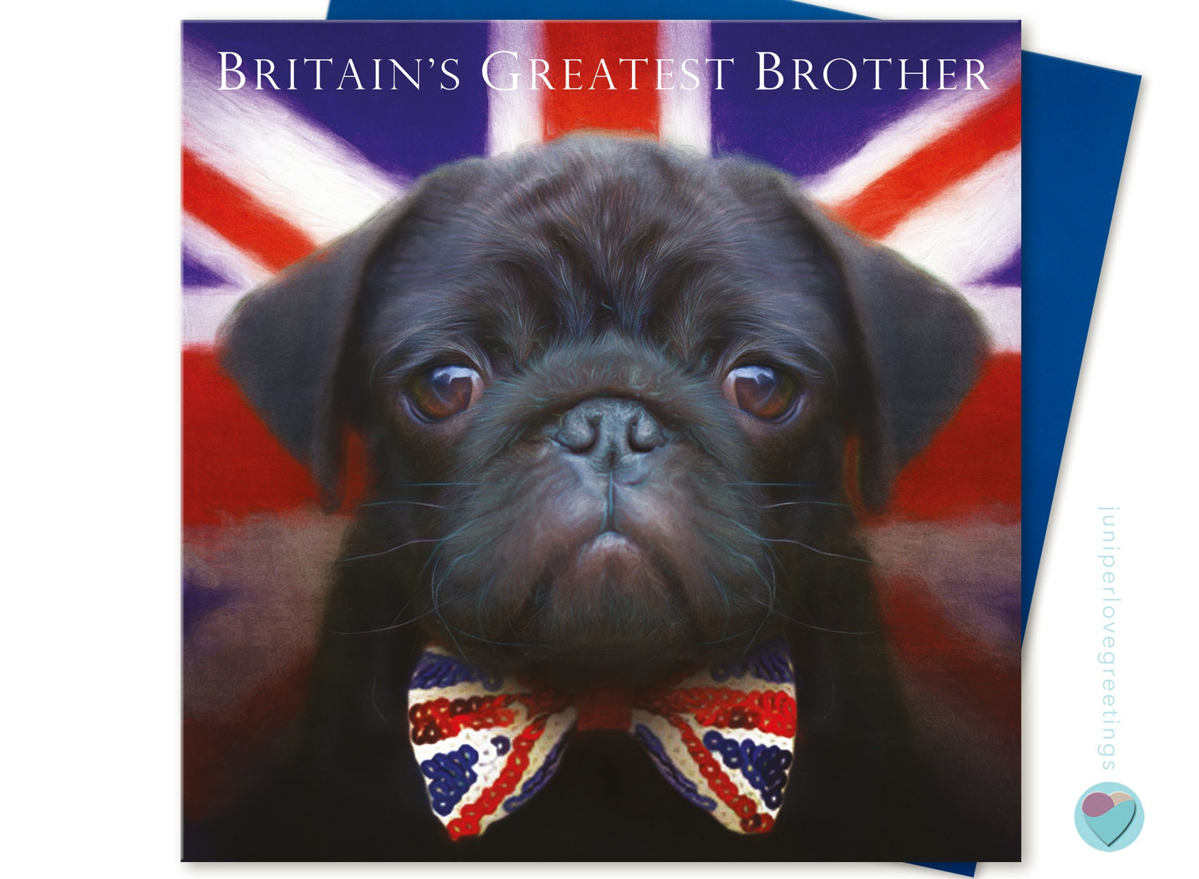 Brother Birthday Card Black Pug Dog Puppy Lover Greeting Etsy