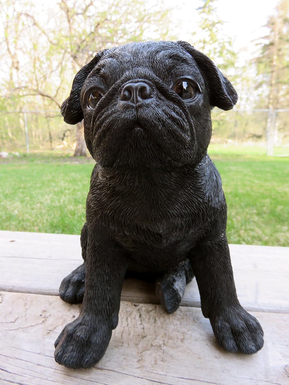 Sitting Black Pug Puppy Dog Life Like Figurine Statue Home