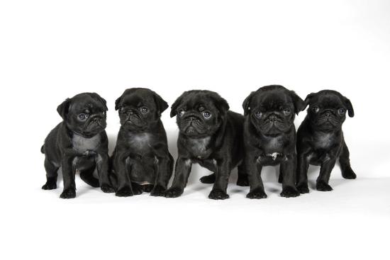 Five Black Pug Puppies 6 Weeks Old Photographic Print At
