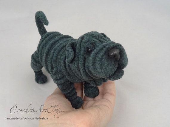 Shar Pei Realistic Black Dog Plush Stuff Animal Toy Is A Etsy