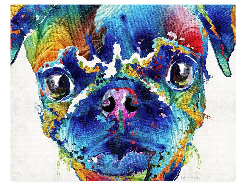 Colorful Pug Dog Art Print From Painting Dogs Pets Cute Nose Etsy
