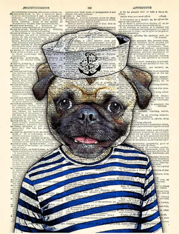 Funny Pug Dog Poster Sailor Pug Print Cool Dog Art Funny Pug Etsy