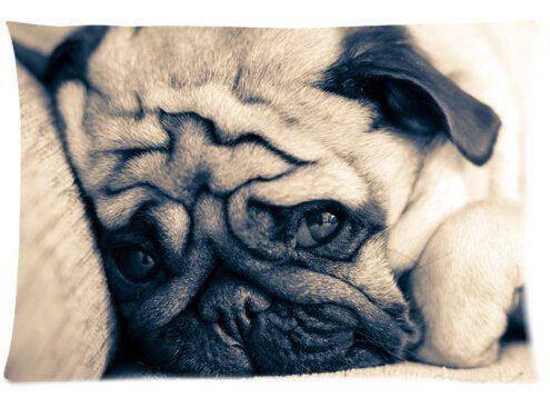 Custom Funny Pug Dog Pattern Zippered Cotton Polyester Pillow Case