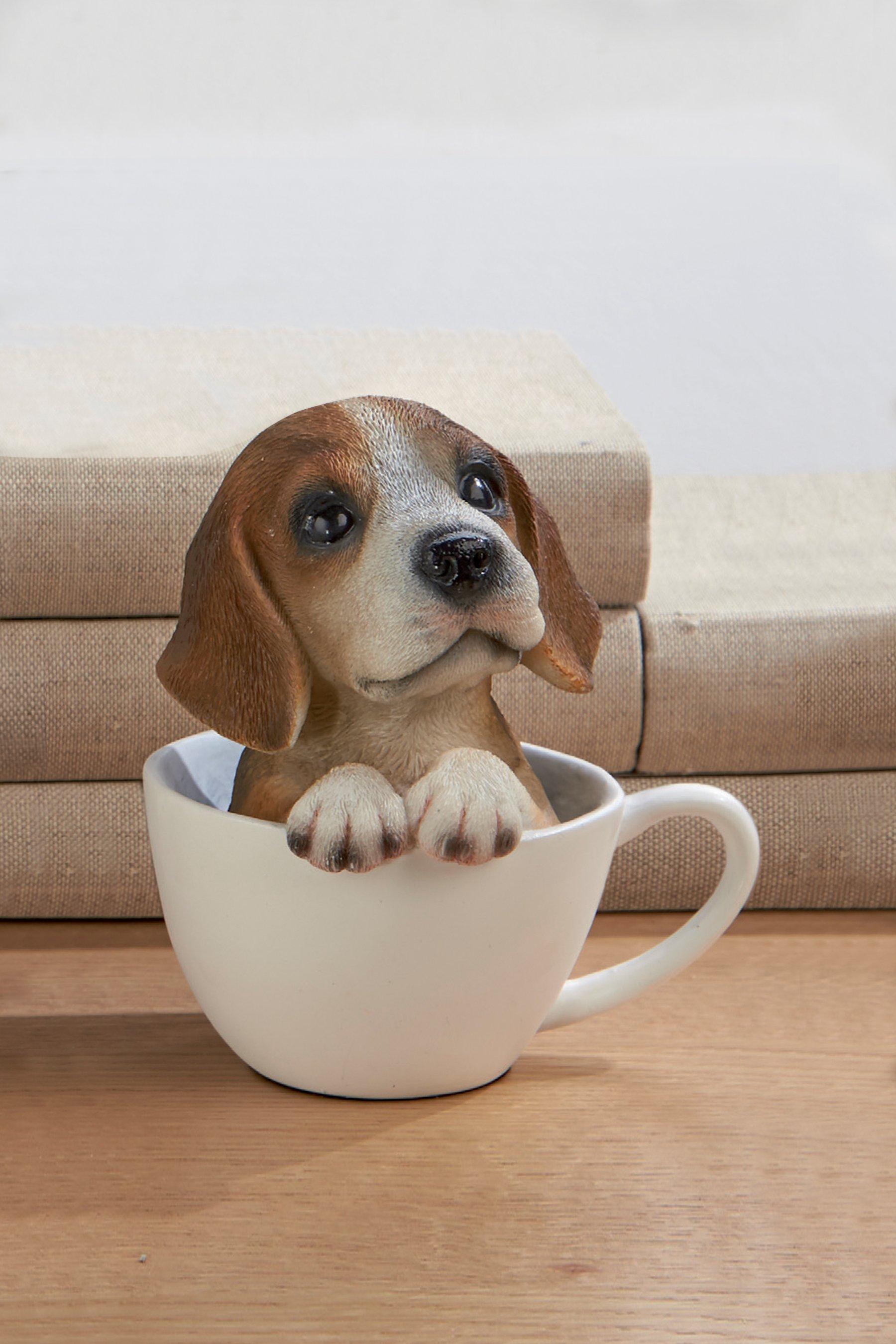 Beagle Puppy Dog Figurine In Teacup Statue Resin Pet 5 75 H