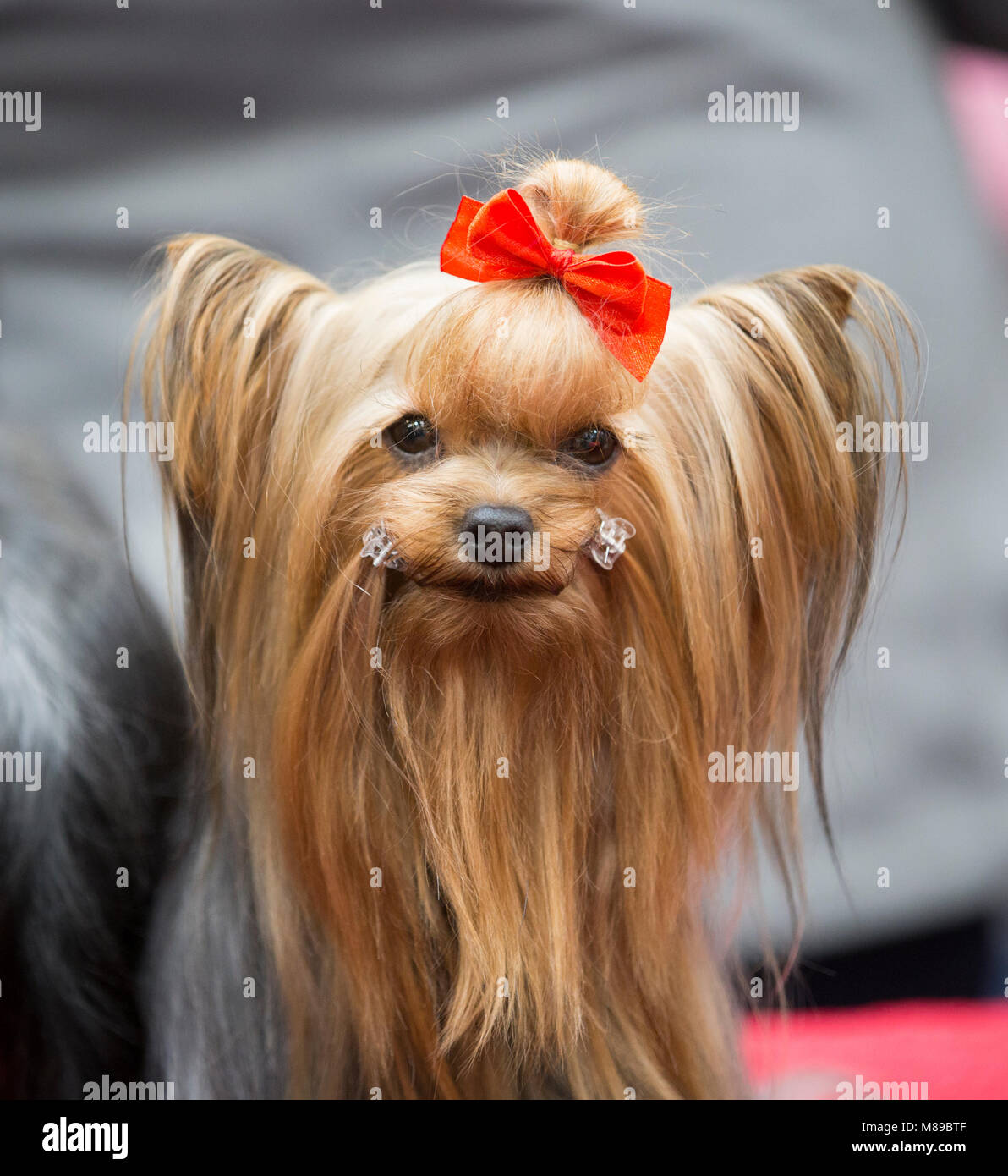 Yorkshire Terrier At The Pink Dog Show In Manchester Stock Photo